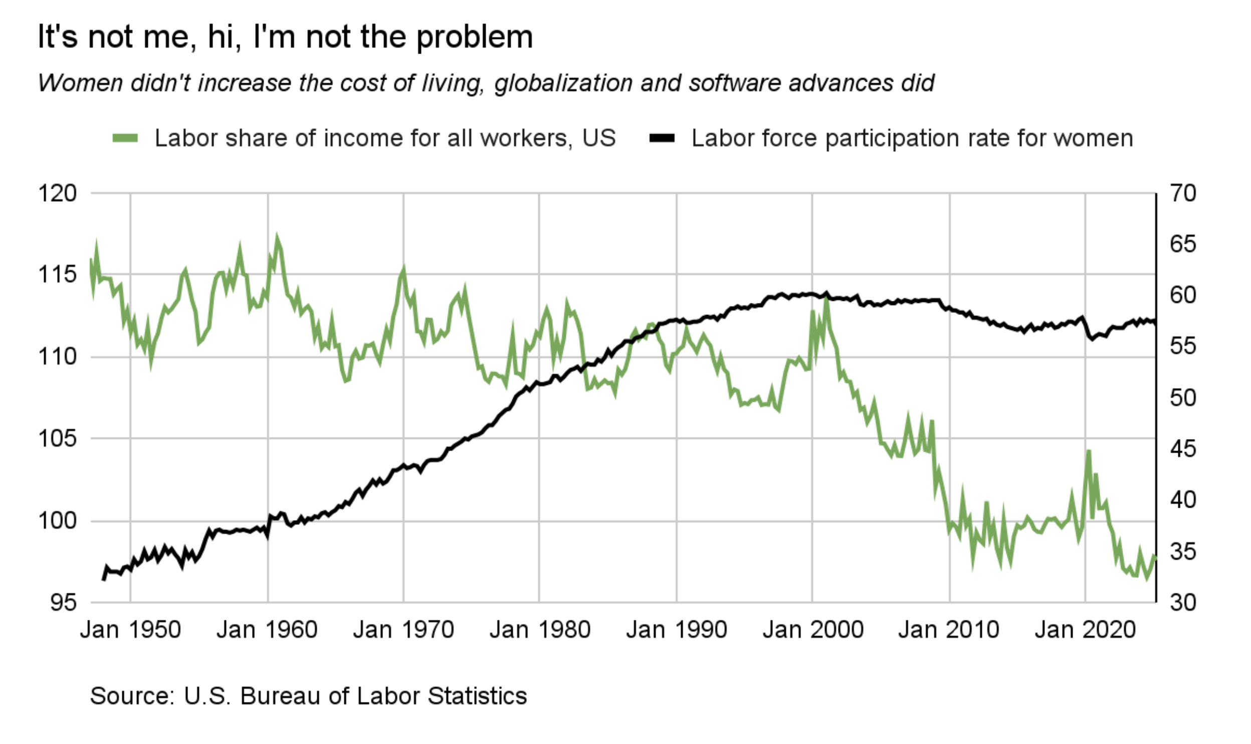 I soon learned, though, one family member’s main takeaway from it: the increase of women’s participation in the workforce is why the cost of living increased over the decades.