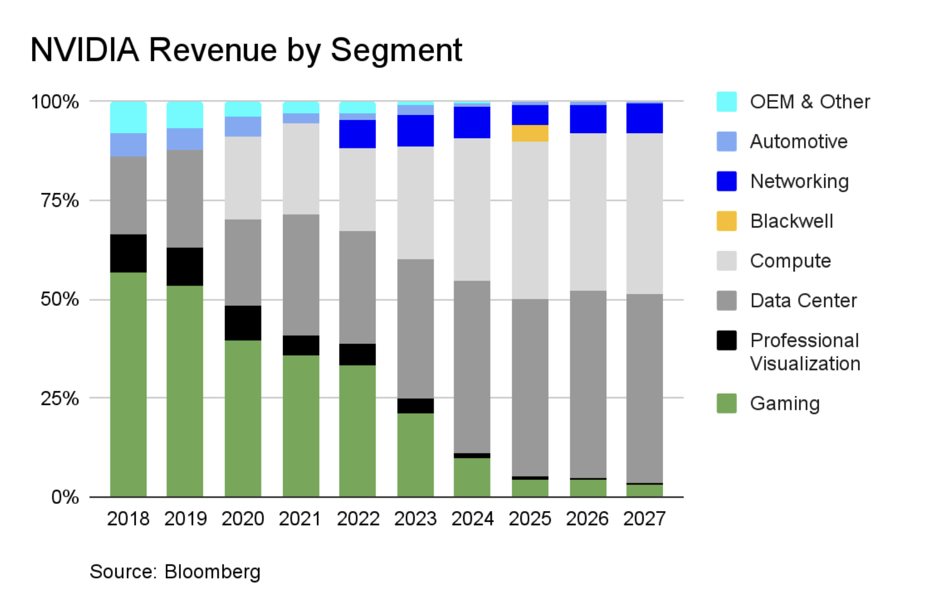 Because the story around Nvidia isn’t just about demand—it’s about capacity. As the following chart illustrates, AI-infrastructure segments now make up the vast majority of Nvidia’s business, underscoring how deeply tied its growth is to the pace of global data-center expansion (as mentioned back in January).